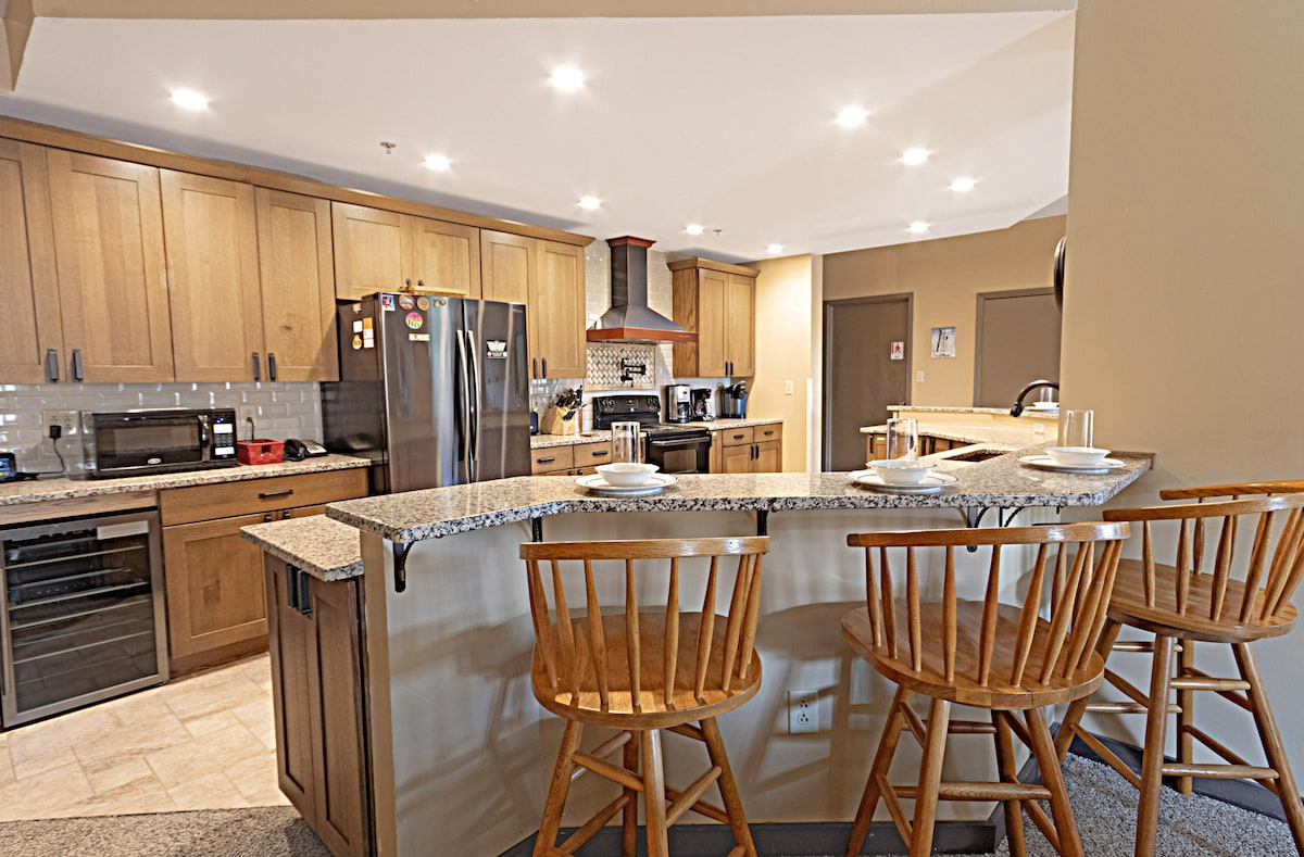 Fique na vila e ande de bicicleta dentro/fora do pátio. Não procure mais, há apenas 2 unidades na aldeia que oferecem esta vantagem. O nosso é um dos dois. Condomínio totalmente atualizado no 1º andar com um quarto privativo. Check-in totalmente sem contato, ignore as filas de check-in e vá direto para a unidade. Novo para a temporada de inverno 2025-2026 - Atualizamos nossos móveis de piso e sala de estar! Sofá-cama novo e cadeira relaxante, piso de madeira mais brilhante! *Algumas fotos podem refletir piso e móveis mais antigos
