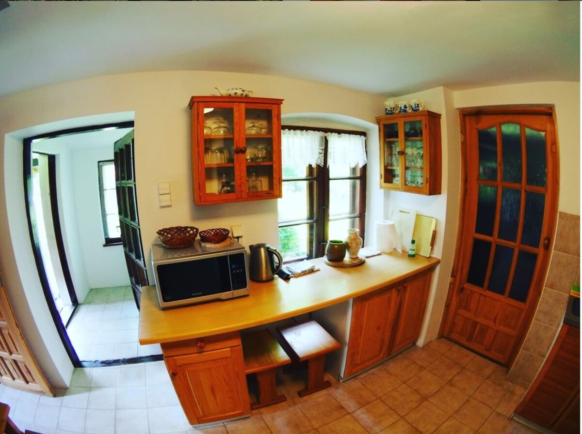 TRANQUIL STAY IN A MAGIC HOUSE!!! -CHECK IT OUT!!! Relax with the whole family at this peaceful place to stay. Endulge in the tranquil atmosphere of nature and plain silence in the forest just by the lake. Fully equipped log house in luxurious canadian style will make you feel astonishingly. Some periods require a minimum stay. Should you have an shorter stay pls write inquiry to me:). No big gigs, NO bachelor partys please ...Extras, like superb rural catering available:)