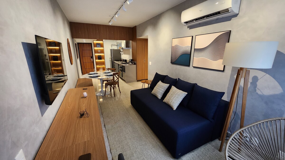 Studio moderno com Cama Queen a 200 m da praia
