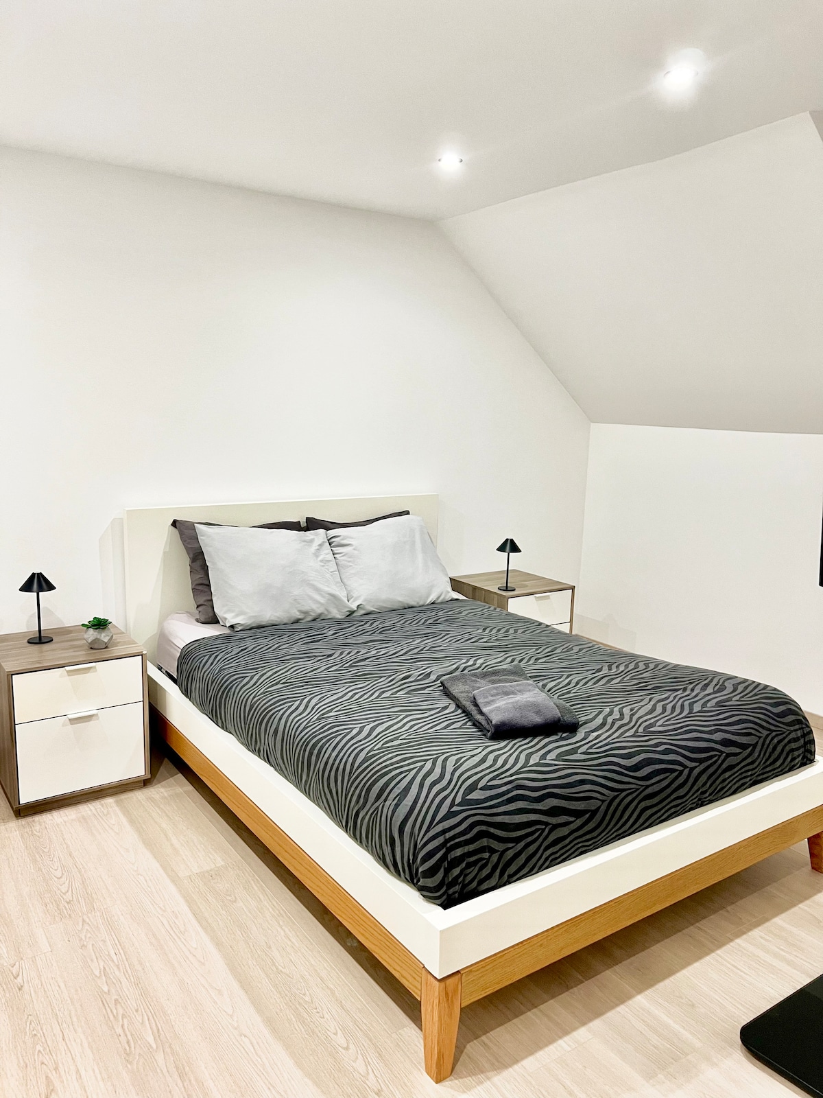 Bem-vindo a este novo apartamento de 90 m², localizado a poucos passos da estação ferroviária de Dippach–Reckange, na comuna de Dippach. Com acesso direto à cidade de Luxemburgo em apenas 12 minutos de trem, este apartamento é perfeito para viajantes e famílias. O apartamento inclui: • Dois quartos espaçosos, cada um mobiliado com roupa de cama e uma mesa • Uma cozinha totalmente equipada com todos os eletrodomésticos necessários • Um banheiro contemporâneo com box • Uma máquina de lavar e uma secadora
