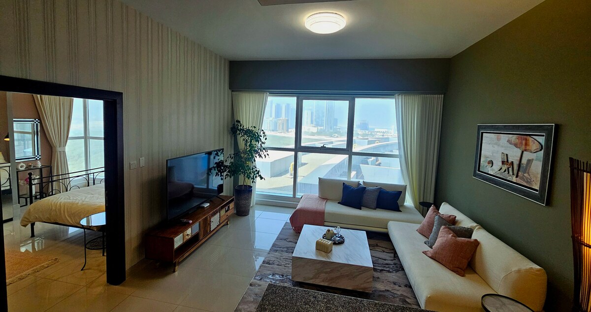 1 quarto com vista para o canal| Varanda grande| Melhorado|Al Maryah