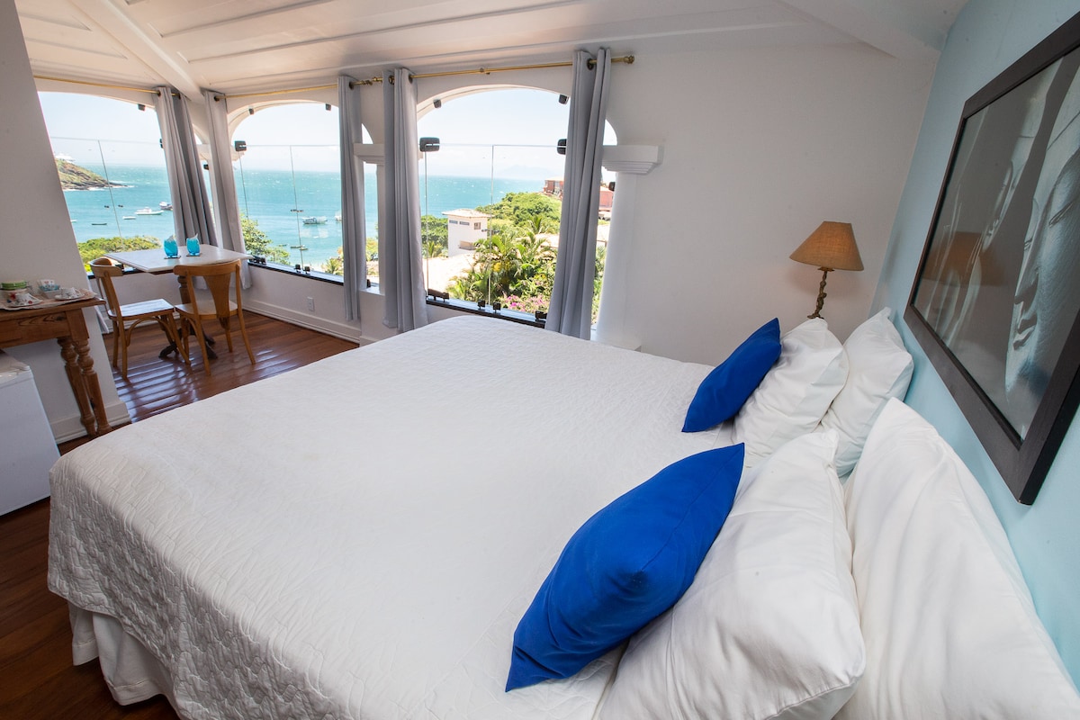 Desperte com uma vista incrível para o mar! Relaxe na varanda e curta momentos inesquecíveis com o visual deslumbrante de Búzios. Aproveite a localização privilegiada, com acesso rápido às melhores praias da cidade. E para começar o dia com o pé direito, desfrute de um delicioso buffet de café da manhã gratuito, repleto de sabores irresistíveis. Estacionamento e café da manhã já incluídos na diária.