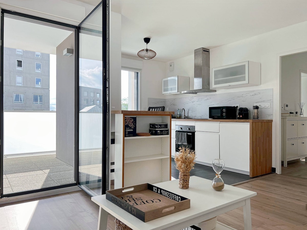 Muito perto de Rennes (8 km) e dos salões de exposições (a 7 minutos de carro) Apartamento com dupla exposição leste-oeste e terraço duplo, aconchegante com todo o conforto para uma estadia agradável em Ille et Vilaine.