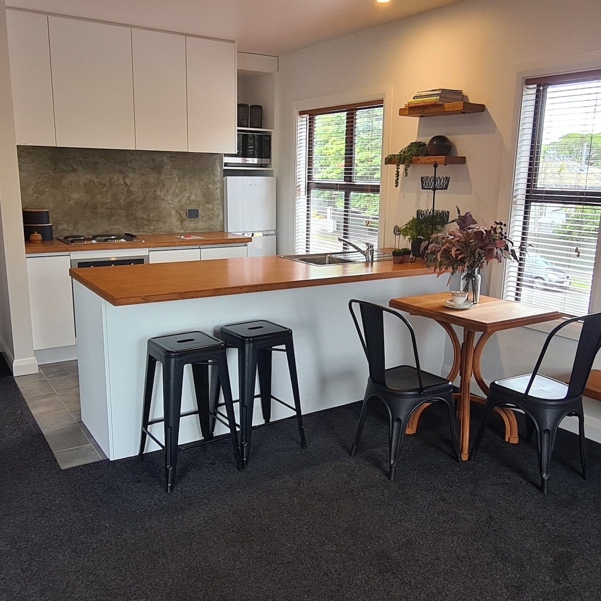 Caminhada central até a cidade, voltada para o norte em uma pequena seção compacta. Sala de estar em plano aberto, cozinha, jantar, moderno e recém-renovado. Cozinha nova totalmente funcional com máquina de lavar louça. Dois quartos duplos. Bdrm 1 tem uma cama queen size e Bdrm 2 tem beliches com cama de casal e solteiro, mais um sofá futon. Banheira nova com ótima pressão de água. Lavanderia, garagem única mais estacionamento na rua para 2 carros. Banda larga de fibra. Todas as comodidades, chattels e eletrodomésticos são novos, incluindo camas, roupa de cama e roupa de cama.