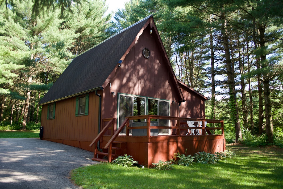 A cabana de madeira foi construída como um lugar para relaxar, descontrair e realmente se desconectar. Aninhado entre 15 acres de colinas ondulantes, o chalé pode servir como um lugar para se agachar e ler três romances, ou uma base para caminhadas, ciclismo e colocar a natureza de volta em sua vida. Esteja avisado, não há televisão e isso é por um bom motivo. Cozinhe, beba, coma, jogue, relaxe e refresque-se. Acorde com as canções dos pássaros e ouça as corujas à noite enquanto você está se aquecendo em torno de uma fogueira.