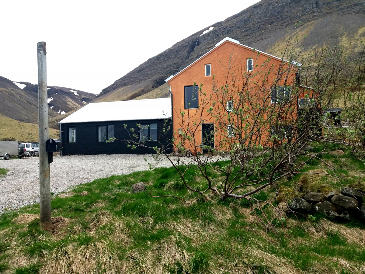 Brekka é uma casa terrivelmente antiga com janelas agitadas, que tentamos fazer um paraíso para artistas, amantes da natureza e outras pessoas loucas (como nós). A casa é idílica, situada na parte inferior de Gilsfjörður, ao lado de dois antigos celeiros cheios de carros quebrados e outro lixo. Chegar aqui é um desvio de cerca de 2x15 km da estrada 60, a estrada principal que atravessa os fiordes ocidentais. O barulho da estrada faz com que seja uma viagem desafiadora, 4WD é necessário de outubro a maio e recomendado no verão. As vistas são incríveis.