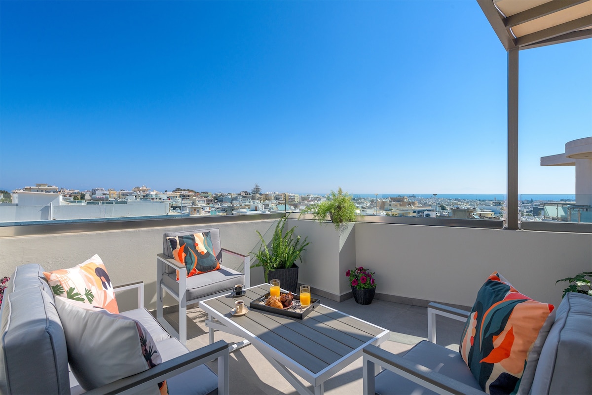 Desfrute do máximo relaxamento neste estúdio elegante e totalmente equipado com uma vista panorâmica deslumbrante para o mar. O apartamento possui uma confortável cama de casal e sofá-cama, ideal para acomodar até 3 pessoas. O pátio privativo com lounge ao ar livre convida você a desfrutar de um café ou vinho com vista para o mar azul infinito. Ideal para casais, amigos ou famílias que procuram acomodações de luxo com conforto e estilo, longe do barulho da cidade.