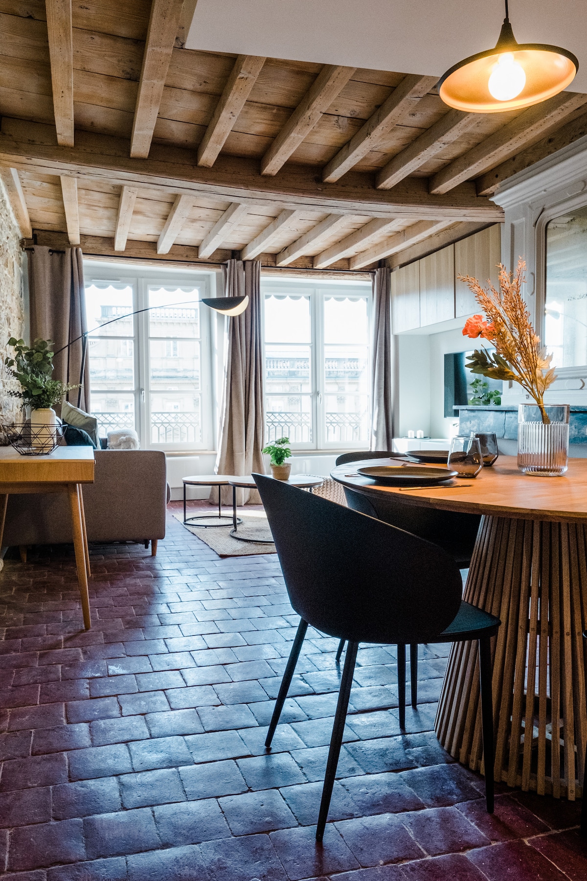 This quiet and beautifully renovated 2-level apartment sits on the top floor of a traditional Lyonese building. This spacious flat has large windows, hardwood floors, fireplaces and a small balcony overlooking the Saône river. It is centrally located in the heart of the historic Vieux Lyon district. It is only steps away from the amazing Lyon traboules (historic passageways), town hall, Bellecour Square, and Saint-Jean cathedral.