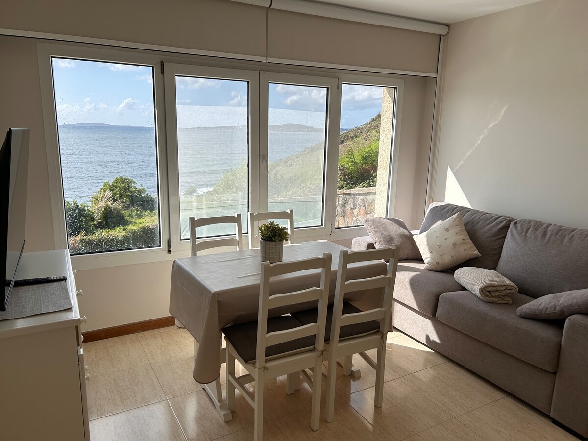Apartamento localizado em uma área muito tranquila com vista para o mar, a 80 metros da praia de Caneliñas e a 300 metros da praia de Baltar. O alojamento está localizado no segundo andar com elevador. Tem 2 quartos, 2 banheiros, cozinha, sala de estar, varanda e vaga de estacionamento gratuita no mesmo edifício. Equipado com tudo o que você precisa: máquina de lavar louça, máquina de lavar, secadora, forno, placa vitrocerâmica, micro-ondas, Smart TV na sala de estar e no quarto, roupa de cama, toalhas e secador de cabelo.