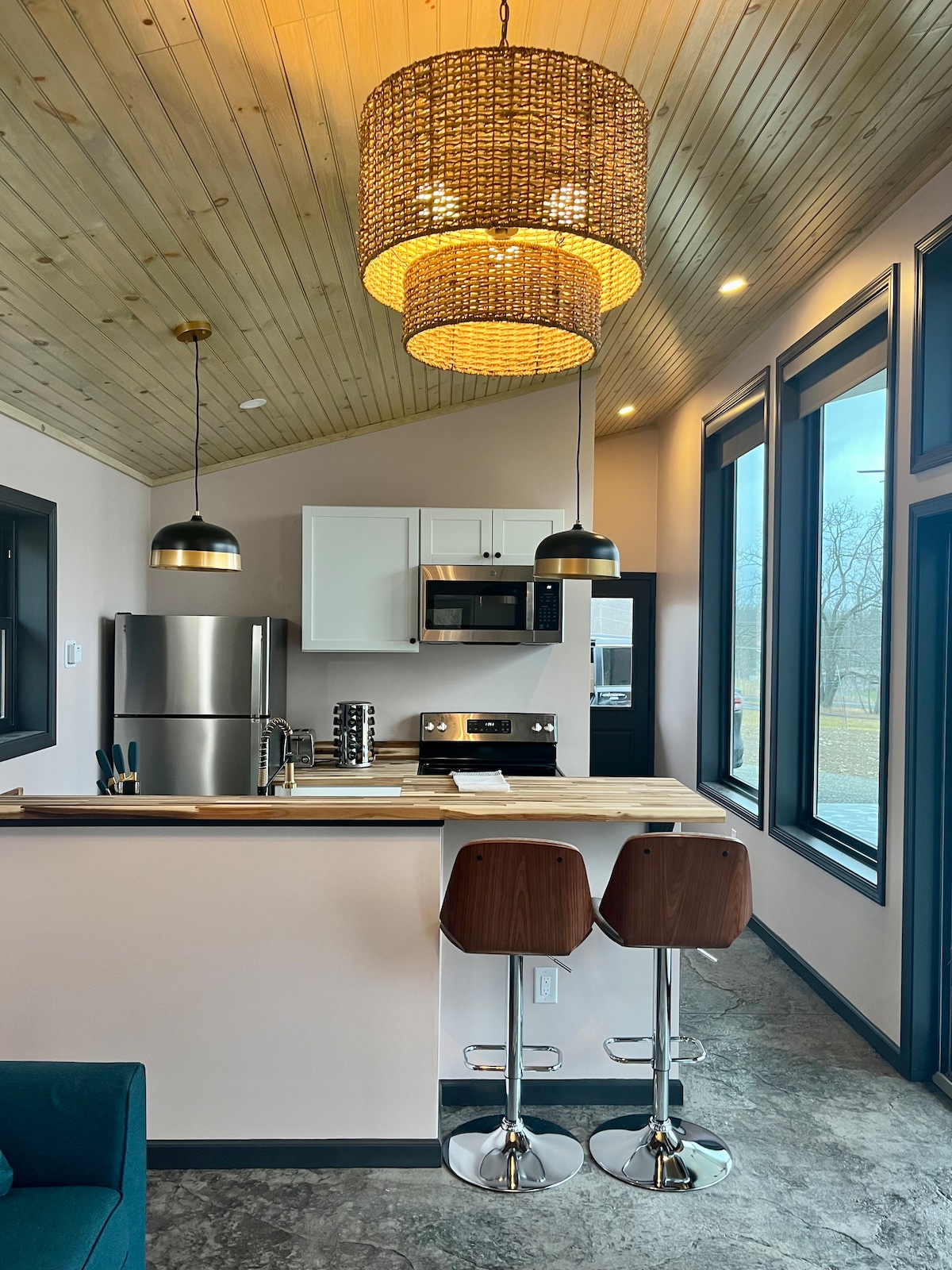 Sua própria casa de campo confortável, privada e imaculadamente limpa de 2 andares com ar condicionado, cozinha completa, máquina de lavar louça, banheira completa, Wi-Fi, TV + Roku, máquina de lavar/secar, deck, sofá, mesa, lareira, grelha e carregamento gratuito de veículos elétricos. Ideal para relaxar, trabalho remoto ou como base para explorar os restaurantes, trilhas, vinícolas e muito mais da região. Aninhado contra uma encosta arborizada, cercado por árvores, prados e pântanos. Toneladas de pássaros e animais. 20 minutos a leste do Ithaca Commons e dos campi universitários.