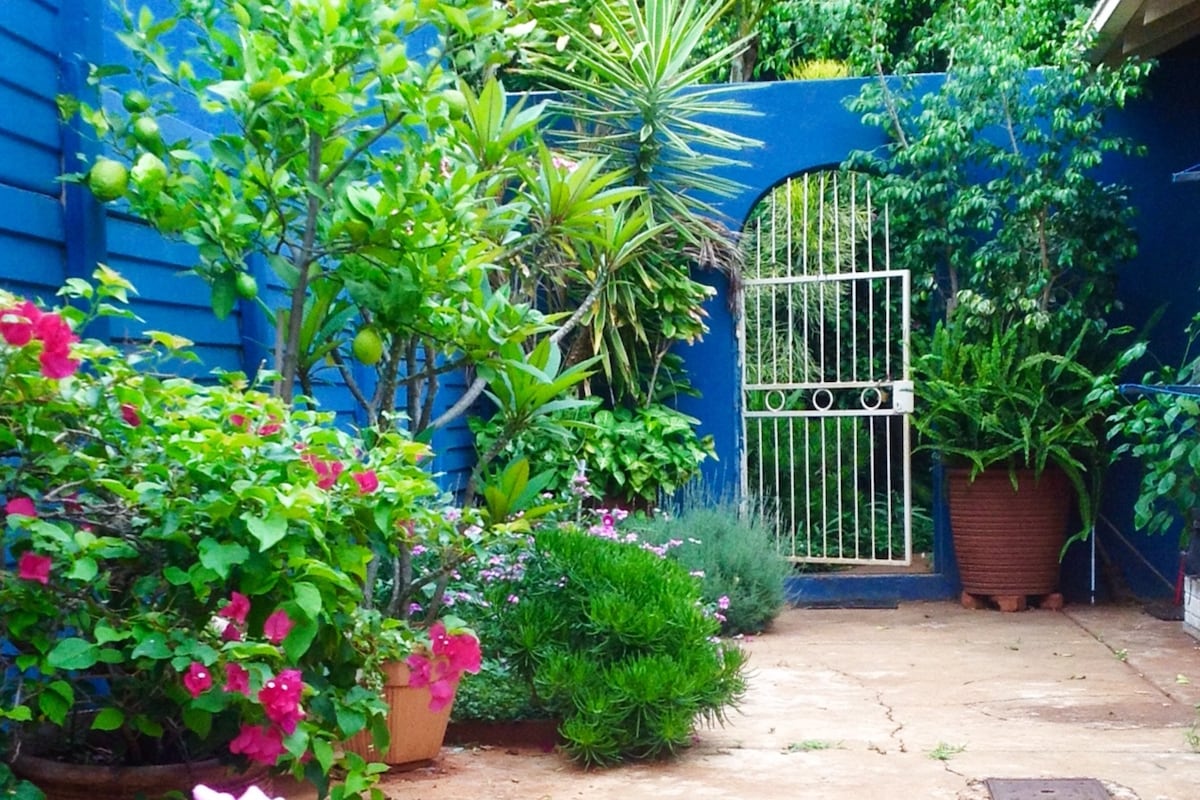 Marina 's Place, suíte de 2 camas com jardim exuberante.