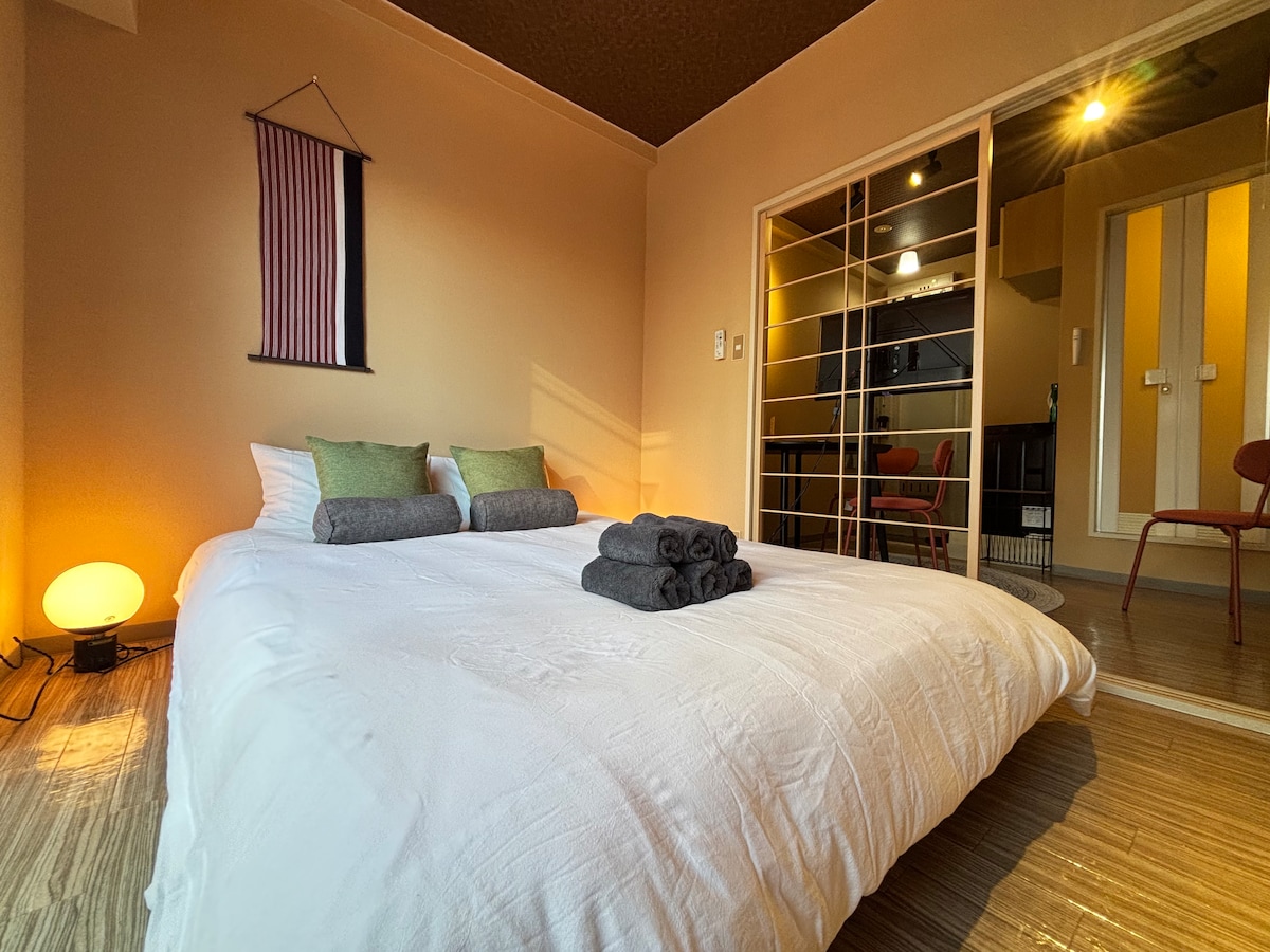 心温まる東京の隠れ家で忘れられない思い出を! JR山手線駒込駅徒歩5分。 新宿、渋谷、上野へ直通電車、抜群のロケーションは東京観光の拠点に最適。羽田・成田空港からも約1時間の便利なアクセスです。メトロも有り。 ダブルベッド1台、シングルベッド2台、最大4名様まで宿泊可。フルキッチン、洗濯乾燥機、高速Wi-Fiも完備し長期滞在も可能。 自慢は、オーナーである私が責任を持って清掃する「最高の清潔さ」お客様からも高い評価があります。妻が心を込めて描いたアートとこだわりのインテリアが彩る空間は、まるで絵本の世界のよう。壁一面の桜の絵の壁紙は、日本の美しさを象徴しています。 徒歩圏内には、温泉や、多種多様な飲食店も。 私達は、ゲストの皆様との出会いを何よりも大切にしています。滞在が素晴らしいものになるよう、心を込めてお手伝いします。ぜひ私たちの隠れ家で、特別な時間をお過ごしください。皆様のお越しを心よりお待ちしております! ※宿は予約が取りづらくなっています。同じ建物の二階にもお部屋をオープンしましたのでそちらもご利用ください。airbnb.jp/h/sakurafan2f-komagome
