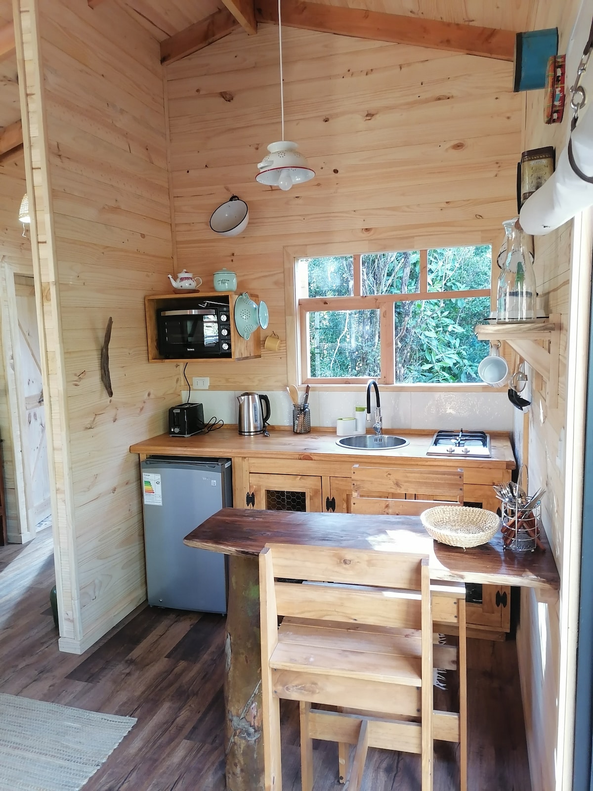 Casa Tiny aconchegante no meio da floresta nativa de hualles e murta. Perto de atrações turísticas como Salto del Nilahue, Playa el Arenal, Playa Epulafquen, Riñinahue e Calcurrupe.