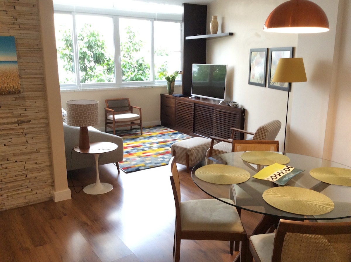 Enjoy a stunning and unique view of both the ocean and the mountain in a centrally located 2 bedroom renovated apartment in Leme, Copacabana ideal for families and couples. The apartment is cozy and has everything you need to make you feel at home. A very spacious and stylishly decorated living room, and a fully equipped apartment. One bedroom has a queen bed, the second bedroom has 2 single beds, and there are 2 more mattress/futons that can be placed in the living room if needed.