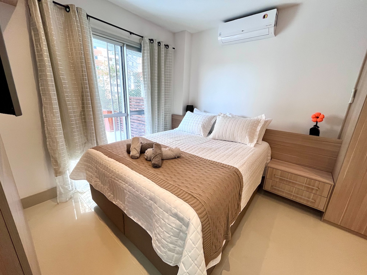 Apartamento preparado para moradia com cama, ambiente climatizado, tv a cabo, microondas, frigobar e pia. A estrutura conta com Piscina, academia, sauna, restaurante e recepção 24h. Informe corretamente o número de hóspedes durante o ato da reserva. a inobservância deste item poderá acarretar em cobranças adicionais.