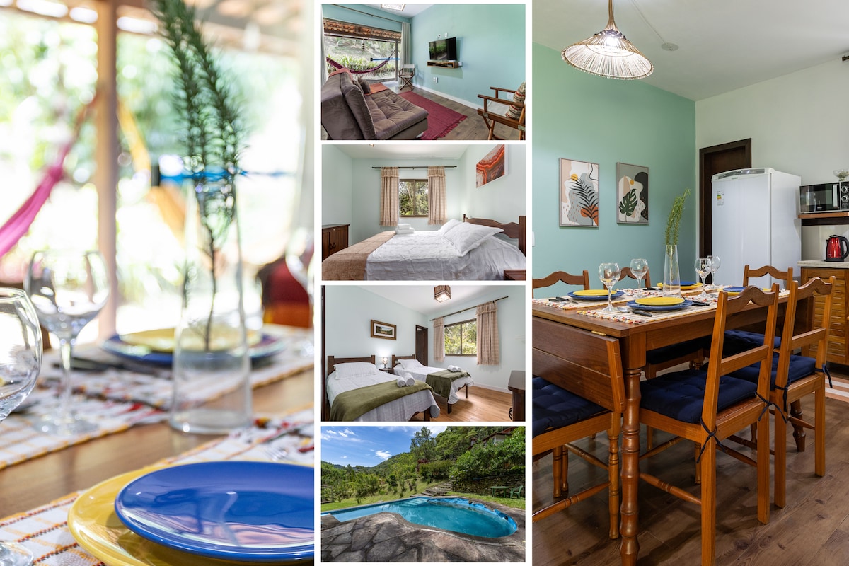 Destaques da acomodação: - Ducha relaxante - Água de fonte natural - Aquecedor solar da água - Duas suítes, sala, cozinha e um lavabo - Acomoda 6 pessoas (2 em sofá-cama) - Auto check-in com cofre de chaves - Vaga de garagem no condomínio - Wi-fi ilimitado (Starlink) - TV 43" smart - Geladeira - Cooktop 4 bocas - Condomínio fechado cercado pela natureza - Piscina de água corrente no condomínio (verificar disponibilidade) - A 50m de um riacho - Açude a 800m - Não aceitamos PET - Para não fumantes