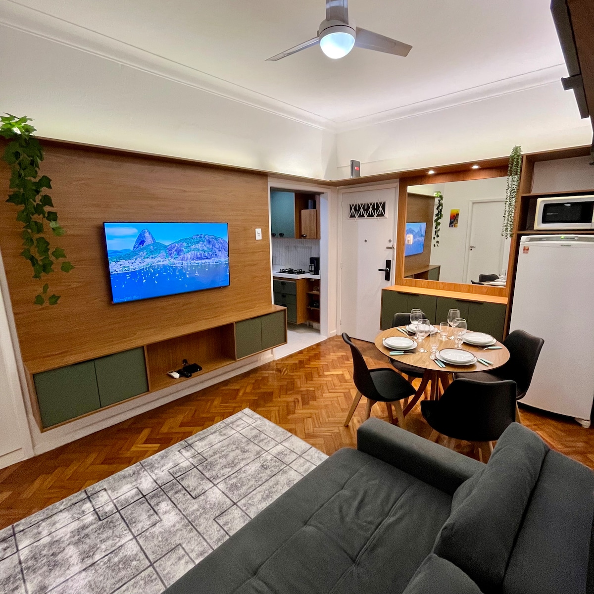 Este lugar único tem um estilo próprio, acabou de ser reformado, vista lindinha para o Cristo Redentor, rústico e simples ao mesmo tempo que confortável. Terracinho agradável com Ofuro, churrasqueira e espaço gourmet. Suíte principal ampla com banheira de hidromassagem Cozinha integrada a sala, sensação agradável de amplitude. No coração de Copacabana, perto do metrô, comércio, supermercados e a uma quadra da praia.