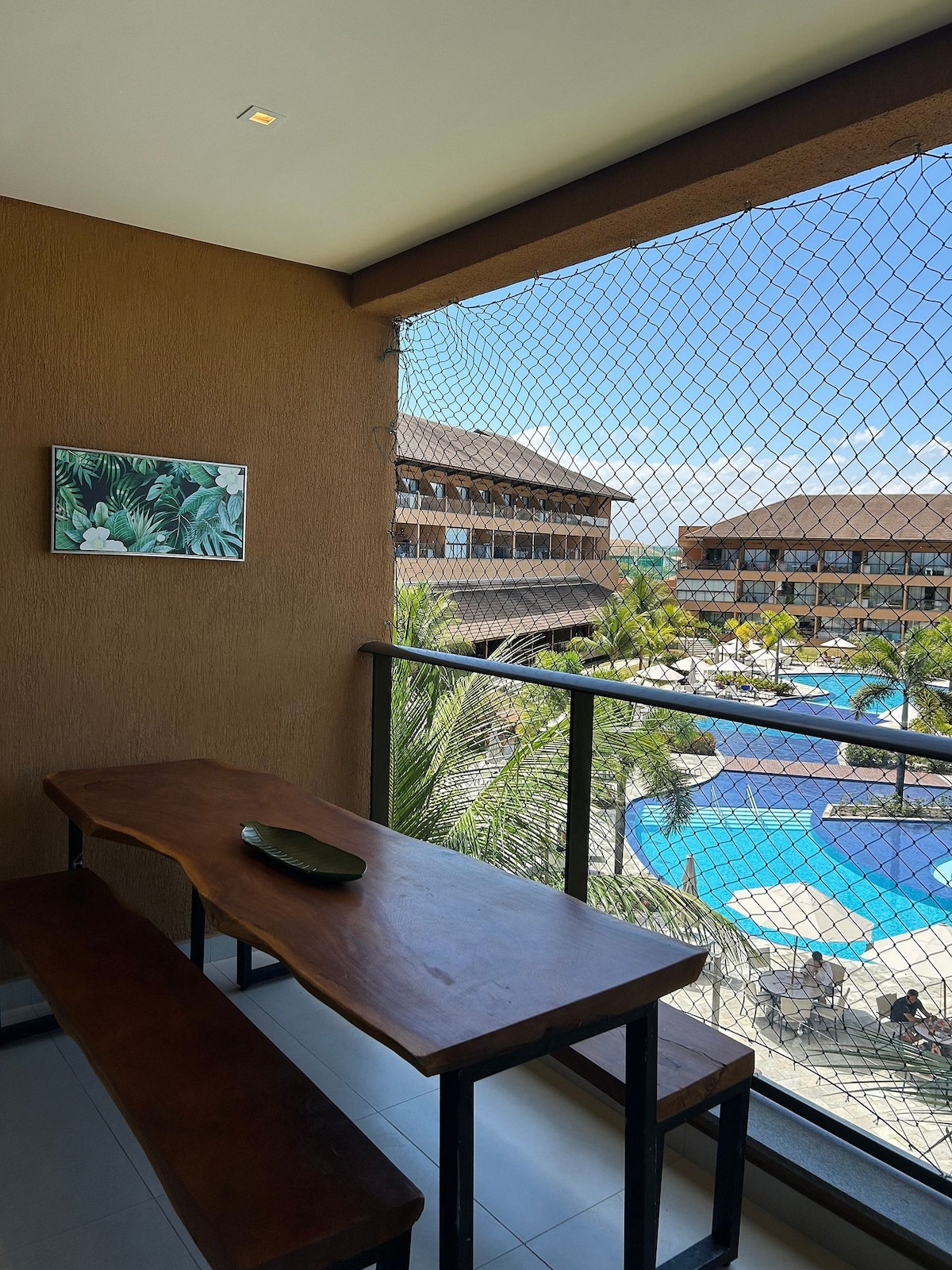 Nosso flat é o refúgio perfeito para quem busca o aconchego da praia. Ele foi pensado para acomodar famílias e casais, oferecendo tudo o que você precisa para se sentir em casa. Prepare suas refeições na cozinha equipada. Você tem acesso a toda a estrutura de lazer. Curta as piscinas, relaxando e aproveitando a conveniência de ter restaurante e quadras esportivas à sua disposição. O melhor de tudo é o acesso direto à praia, permitindo que você vá e volte do mar com total facilidade.
