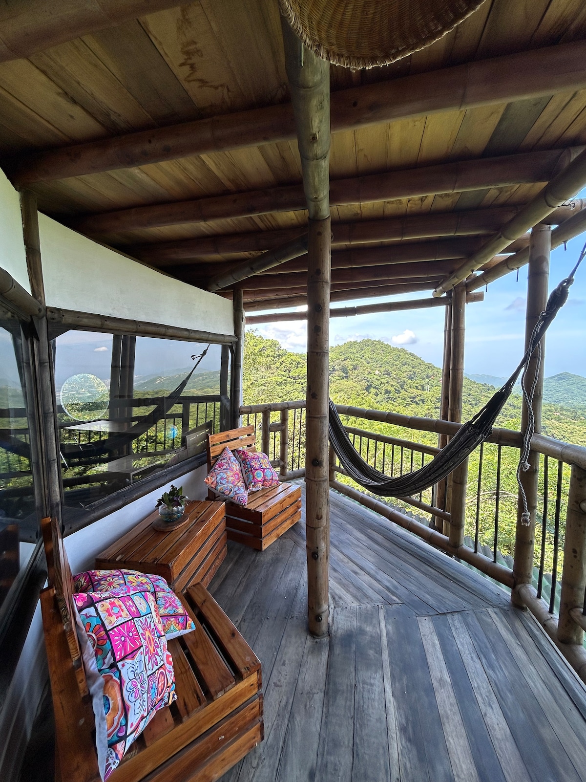 Cabana artesanal construída com materiais naturais na tradição Kogui. 1º andar - mesa, cadeiras e 2 redes para relaxar + banheiro completo. 2º andar - espaço circular para dormir com cama de casal e beliches. Espaçosa e tranquila, esta cabana oferece uma varanda com cadeiras de balanço onde você pode contemplar o céu noturno. Rede de mosquitos fornecida. A entrada Zaino para o Parque Nacional Tayrona, farmácias, restaurantes e pontos de ônibus ficam a 5-10 minutos a pé. Aluguéis de café da manhã e bicicletas disponíveis mediante pedido.
