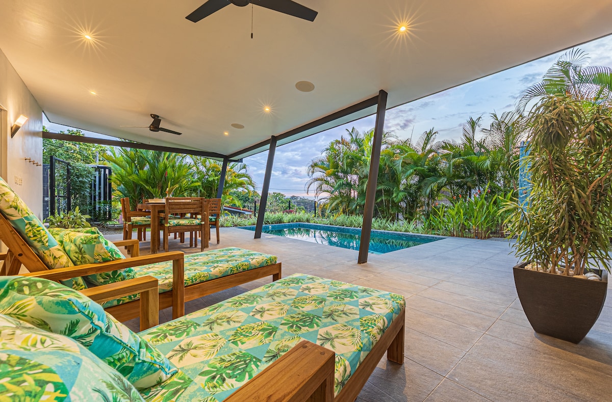 Vila de conceito aberto equipada com todos os confortos de uma casa; cozinha totalmente abastecida, smart TV, churrasqueira, piscina de mergulho, Wi-Fi e terraço/quintal privativo. Termine um dia perfeito afundando na luxuosa cama king size, encantada pelos hóspedes como a cama mais confortável da cidade. NÃO há política de visitantes e POR FAVOR, não são permitidas crianças/bebês. Não é necessário 4X4. A uma curta distância a pé de lojas, restaurantes, bancos, mercearias, a uma curta distância de carro do Parque Nacional Marino Ballena e das mais belas praias!