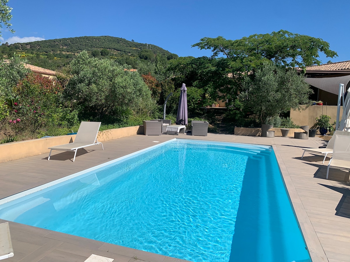 Piscina aquecida Naturalmente de 1º de maio a 1º de outubro pelo sol e por efeito estufa graças ao abrigo deslizante. Piscina Inteligente conosco. Só vamos lá quando você não está lá! Sua tranquilidade é nossa principal prioridade Banheira de hidromassagem para 5 pessoas. Roupa de cama fornecida, toalhas internas e externas fornecidas. Lareira, churrasco, churrasco, serviço de autoatendimento. Não há comida disponível. Festas e aluguéis ao ar livre não são aceitos.