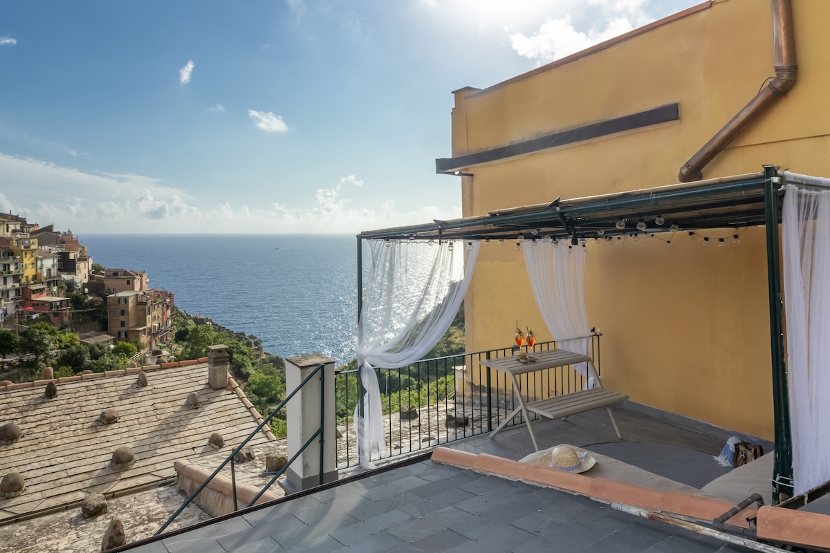 Apartamento recentemente reformado (2018) com terraço panorâmico com vista para o mar, localizado na parte alta da cidade, perto do Castelo Medieval, com vista para a cidade de Riomaggiore e a Marina. Composto por um quarto, uma sala de estar com kitchenette e um banheiro, além de estar equipado com todo o conforto, tem nas grandes janelas e no terraço as principais peculiaridades.