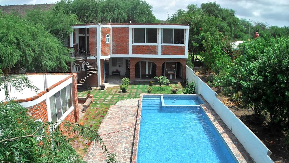 Visitanos y disfruta de la traquilidad de tus vacaciones con nuestra picina climatizada solar , perfecta para familias, negocio, eventos sociales , estamos a 8 min del centro de Rioverde, 20 min maximo del manantial la media luna , disfruta de sus bellos amaneceres , gastronomia y su gente, la casa es comoda y cuenta con Aires a condicionados , 4 television