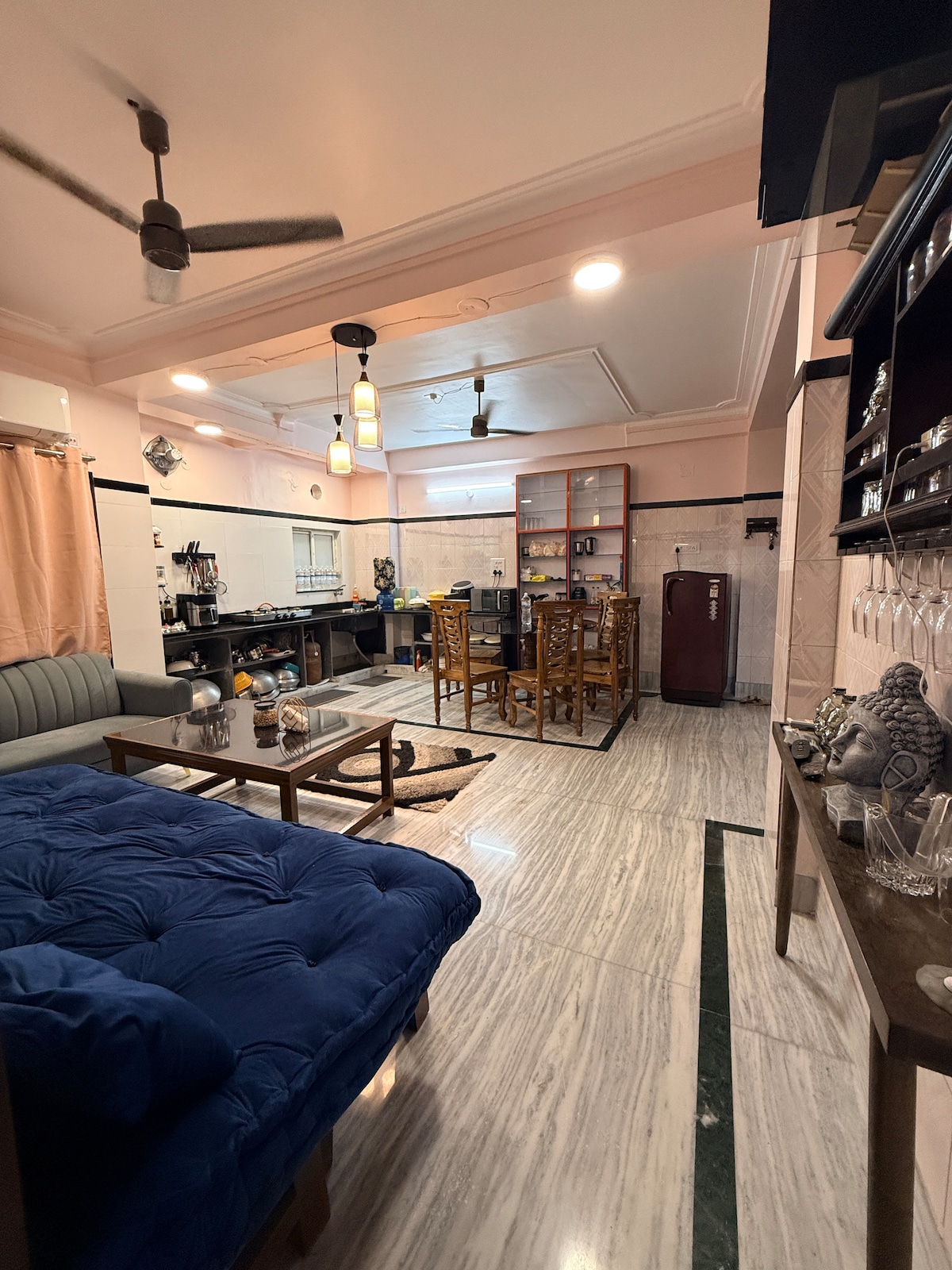 Aconchegante 1BHK no térreo com uma vibe de home-theatre! Desfrute de um projetor enorme para noites de cinema, uma cozinha totalmente equipada com geladeira, micro-ondas, purificador de água e todos os utensílios essenciais.O quarto dispõe de uma aconchegante cama king-size, ar-condicionado e amplo espaço para armazenamento.Inclui máquina de lavar roupa, banheiro limpo com itens essenciais, Wi-Fi e self check-in para sua conveniência. Adequado para animais de estimação e perfeito para casais, viajantes individuais ou estadias longas. Unidade privada sem espaços compartilhados. Comprovantes de identidade locais não são aceitos.