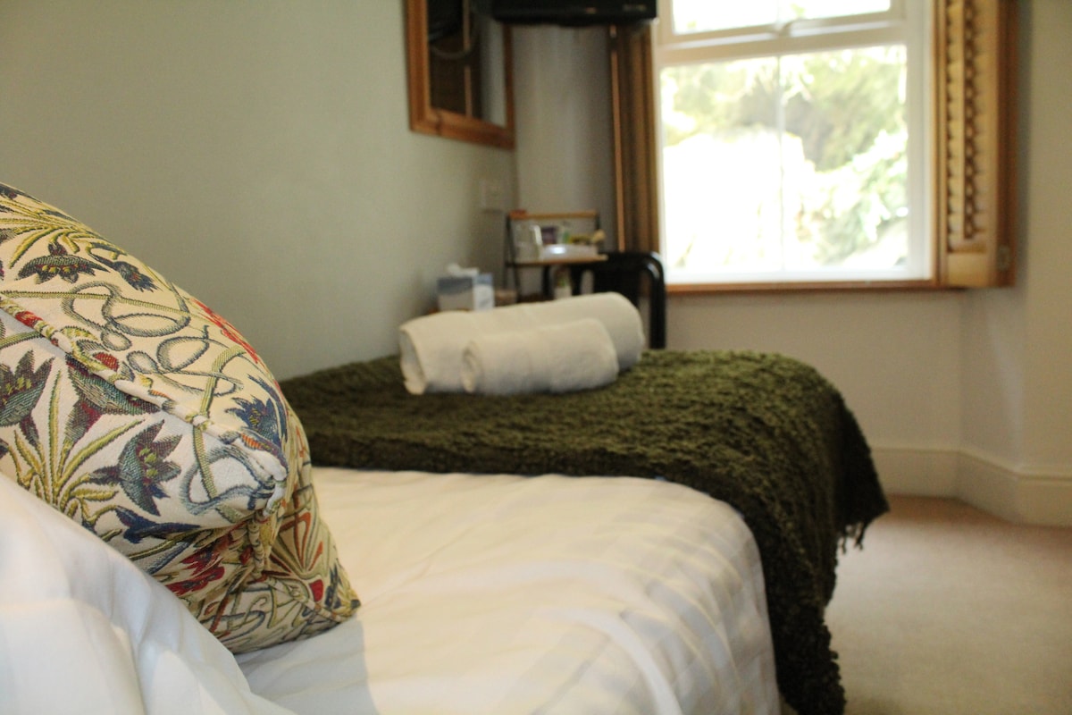 Para pernoites, um quarto duplo compacto. banheiro do outro lado do corredor. , cama de casal , geladeira ,utensílios para chá e café. Fã, aquecimento central. Wi-Fi por toda parte . Aceitamos cães bem comportados em alguns quartos ( Marley não é um desses quartos ). Crianças apenas mediante solicitação Por favor, verifique antes da reserva. Café da manhã gratuito com cereais, frutas, croissants ,iogurte e café disponíveis na sala de estar dos hóspedes. Café da manhã à la carte no café do andar de baixo, aberto diariamente das 9h às 17h