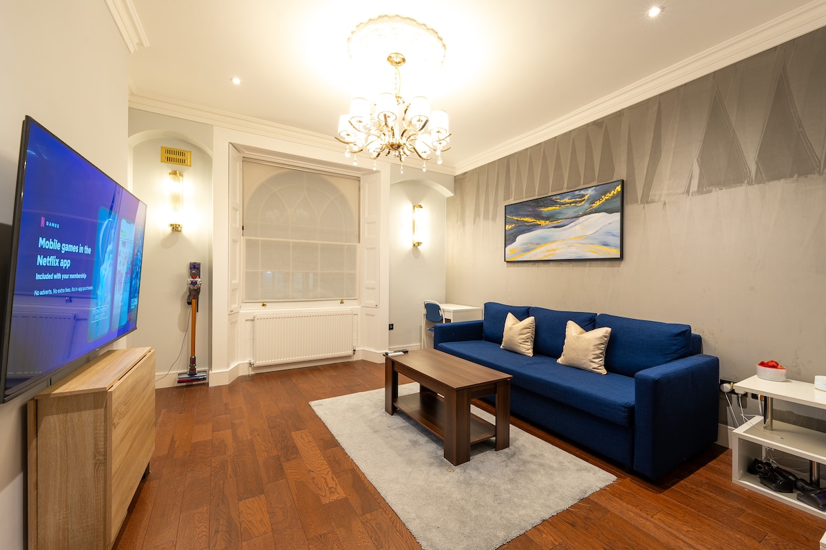 Bem-vindo ao nosso encantador apartamento de 1 quarto no último andar com varanda privada no coração de Holborn – a base perfeita para explorar Londres. Situado em uma rua vibrante a apenas 5 minutos a pé da estação Holborn, a 7 minutos a pé da estação Covent Garden e do West End, este elegante apartamento acomoda confortavelmente até 4 hóspedes com um quarto de casal acolhedor e um sofá-cama de tamanho completo na sala de estar.