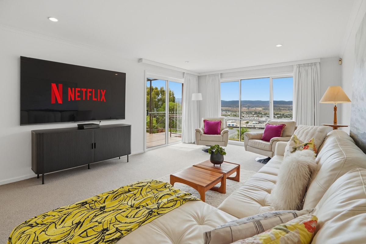 Nossa casa grande e espaçosa é perfeita para todos! Um refúgio luxuoso para casais, grupos ou até 3 famílias que desejam ficar juntos. Grupos maiores apreciarão o tamanho e as comodidades desta propriedade com 5 quartos, 3 banheiros, 2 salas de estar e uma sala de jogos infantil separada. Com água quente a gás e cozinha, camas de luxo, móveis de qualidade e uma banheira de hidromassagem. Nosso Trevallyn Treasure é a casa de escolha se você estiver procurando uma propriedade de alta qualidade com tranquilidade perto de Launceston CBD.