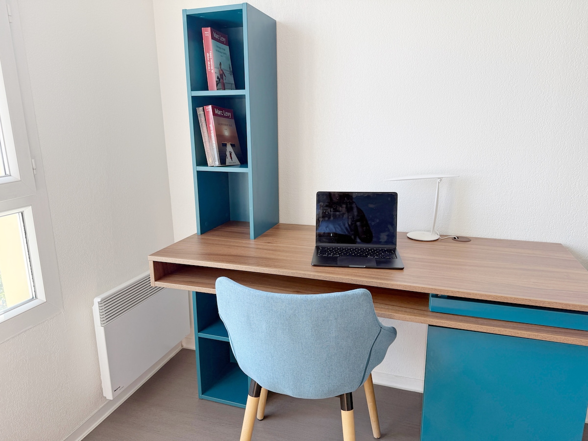 Aproveite a tranquilidade do nosso encantador T2, totalmente reformado, em um pequeno conjunto de 2 apartamentos. Você tem no térreo um acesso individual, bem como um jardim sem vizinhos exposto ao sul. Localizado em frente ao calçadão do bairro Torcatis, não há necessidade de usar o carro, graças ao acesso direto ao centro da cidade pela passarela de pedestres. As vagas ao redor da acomodação são gratuitas, caso contrário, um pequeno estacionamento por 2€ por dia está localizado em frente ao apartamento.