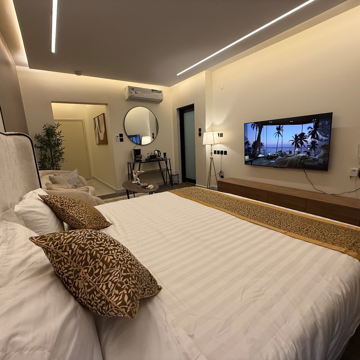 • 📺 برنامج ترفيهي فاخر يشمل جميع القنوات الرياضية والعالمية • 🎬 منصة أفلام ومسلسلات متنوعة بجودة عالية • 🌐 واي فاي فائق السرعة • 📺 شاشة ذكية 65 بوصة لتجربة مشاهدة سينمائية • 🛏️ غرفة نوم فاخرة بتصميم راقٍ • 🛌 سرير إضافي عند الطلب برسوم • ✨ ديكور عصري بلمسات فندقية راقية • 🍽️ مطعم متوفر في نفس البناية • ☕ كوفيات جميلة جدًا بالقرب من الموقع • 📍 موقع استراتيجي مميز يسهل الوصول إليه • 🕊️ خصوصية وهدوء تام