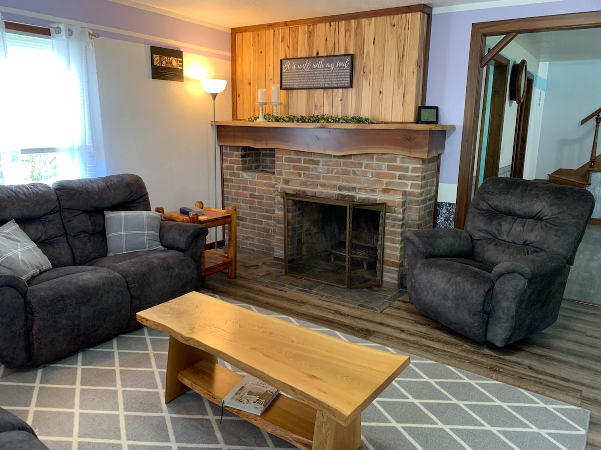 Aproveite sua estadia no Rustic Retreat. A grande sala de estar oferece muito espaço para trabalho ou relaxamento. Tem máquina de lavar/secar roupa. O quintal oferece uma churrasqueira, mesa de piquenique, cadeiras extras e guarda-sol. TV Roku e Wi-fi disponíveis. Banheira de tamanho completo com chuveiro, camas King e Queen, com TV adicional no quarto King. A cozinha tem muitos itens para suas necessidades culinárias. Estacionamento fora da rua e perto de muitas comodidades. Luz do anoitecer ao amanhecer que brilha sobre o quintal e a entrada da garagem.