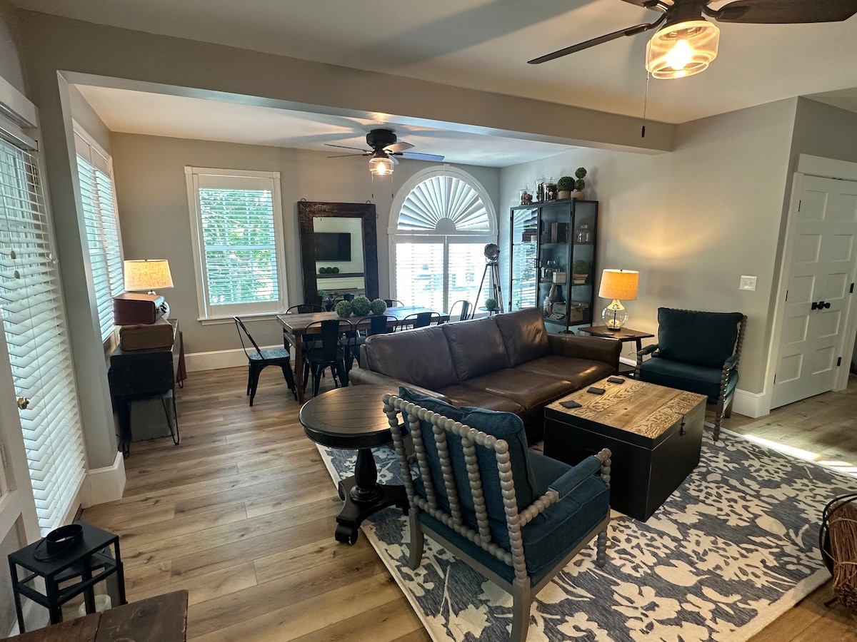 LOCALIZAÇÃO INCRÍVEL Esta joia do centro da cidade tem 2 andares (1200 pés quadrados) de espaço de estar, a poucos passos de restaurantes, teatro, clube de jazz, bares, salão de música, compras + shows à beira-mar. Roupa de cama de luxo + decoração moderna. Cozinha completa, 3 quartos, 1,25 banheiros, ar condicionado central + pisos de madeira. Quintal privativo + 2 vagas de estacionamento GRATUITAS. DEVE ter mais de 24 anos para reservar. Pais + filhos < 24 é permitido. Não há reservas de terceiros. Se você reservar, você deve ficar. SEM ANIMAIS DE ESTIMAÇÃO. PROBLEMAS DE MOBILIDADE?? POR FAVOR, tome nota da escada íngreme e estreita. 8 camas.