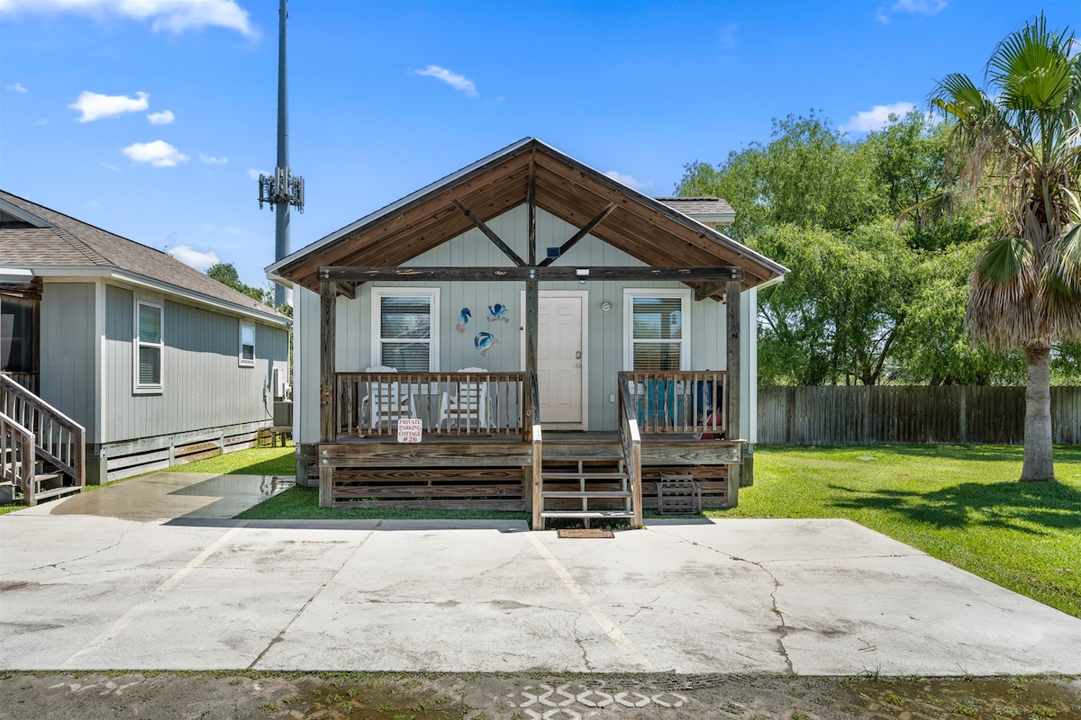 Pescadores, caçadores, Texanos de Inverno, trabalhadores remotos e pessoas que só querem fugir para a costa: criem memórias felizes neste lugar único e familiar. Cães são bem-vindos. Localizado em Aransas Pass (Paraíso de Água Salgada) e a apenas sete milhas de balsa gratuita para as praias de Port Aransas. Estacionamento de barcos, garagem coberta, quintal totalmente cercado, chuveiro ao ar livre no pátio fechado. A casa de campo de 550 pés quadrados usa ar e calor central, mantendo você refrescado - não importa o quão quente fique no sul do Texas.