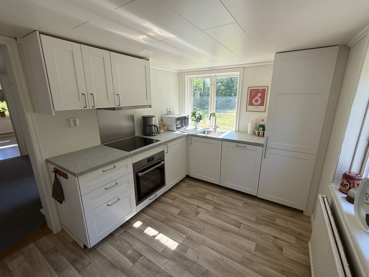 Uma casa de campo encantadora à beira-mar com um terraço virado para o sul. O terraço está mobiliado com um conjunto de lounge e churrasqueira. Dentro há uma cozinha totalmente equipada, um banheiro com chuveiro e vaso sanitário de incineração. A sala de estar inclui acesso a uma pequena praia de areia, uma sauna e um cais com uma doca flutuante para relaxar e tomar banho. No chão temos nossa casa principal e também galinhas caipiras e um gato maravilhoso. Fique à vontade para escolher seus ovos frescos de café da manhã. Bicicletas, SUP e alguns equipamentos de pesca disponíveis