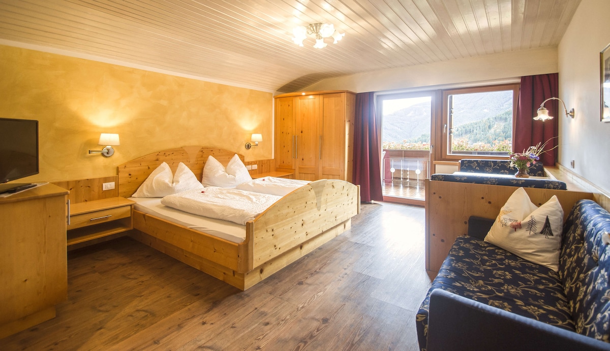 Muito mugido, miado e latido, tagarelice e gargalhadas: "Bem-vindo ao OBERHOF em Pustertal! Que bom que você está aqui! Nosso Oberhof está localizado a cerca de 800 m acima da aldeia de Weitental. Conosco você encontrará sobretudo uma coisa: paz, tranquilidade e natureza pura! O ar puro da montanha, odores de madeira e floresta, a vista livre para as montanhas de Fundres e o vale, longe do barulho e do estresse da cidade, bem como as caudas abanando em boas-vindas do cão da fazenda Max estão incluídos! ALMENCARD PLUS - incluído!!!