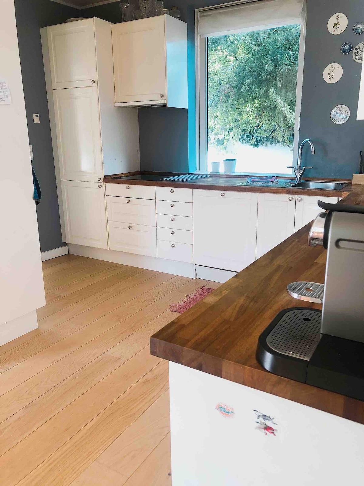 Her er der plads til hele familien i rolige omgivelser. Direkte udgang til egen terrasse og sydvendt lukket have med sol hele dagen. Her kan I grille, drikke kaffe på terrassen og børn og hund kan løbe trygt rundt. Stort køkken med induktion og opvaskemaskine. Køkkenet hænger sammen med stuen, så I kan lave mad, snakke og se TV på samme tid. Stort badeværelse med vask og tørretumbler. Tre gode soveværelser med opbevaring til tøj. Sengetøj og håndklæder inkluderet. Egen parkeringsplads.