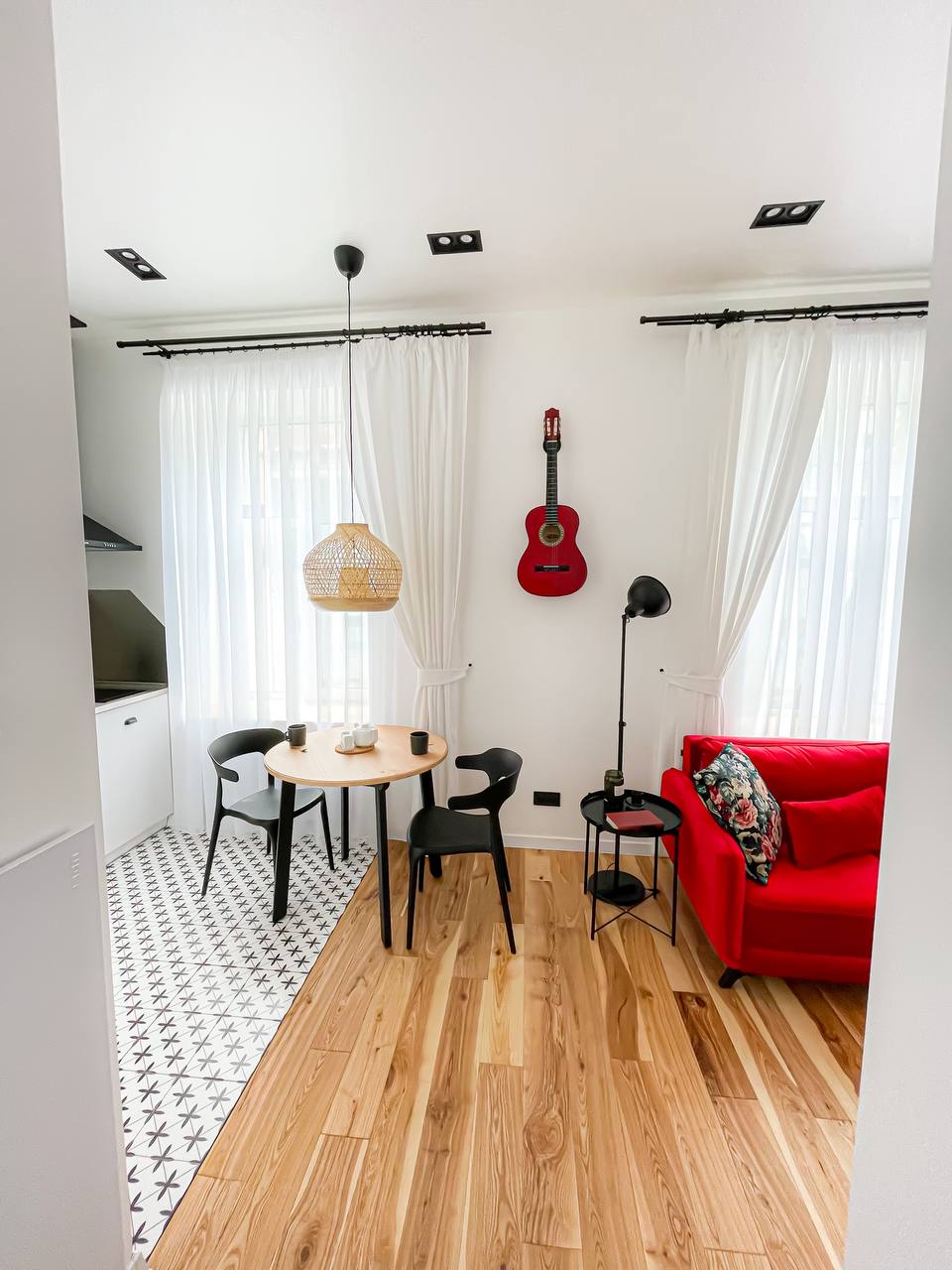 Business-Class Apartments Located in a building with a fully equipped basement. Quiet, gated courtyard with private parking. Modern designer renovation creates a cozy and welcoming atmosphere for a comfortable stay. The apartment features: Comfortable double bed with a premium orthopedic mattress Smart TV High-speed Wi-Fi Fully equipped kitchen For your convenience: Washing machine Iron Hair dryer Complimentary toiletries 🚭 Smoking is strictly prohibited.