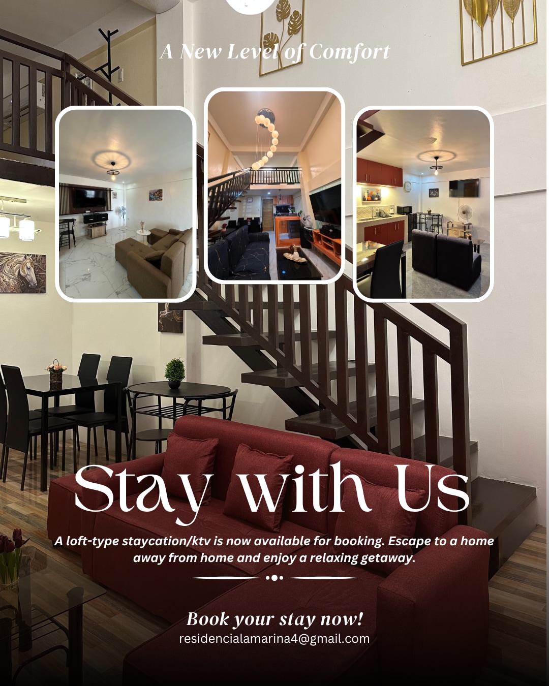 Ready for a break? Residencia La Marina Staycation, A loft-type rooms 🏠is now available for booking! 🔖 Escape to a home away from home and enjoy a relaxing getaway. Book your stay with us! 🥰🥰 We have 4 loft type bedrooms and 1 hotel type room, you can message us which room you’re going to book.
