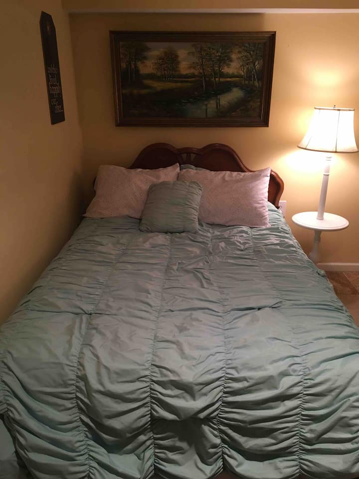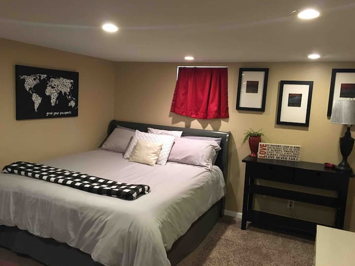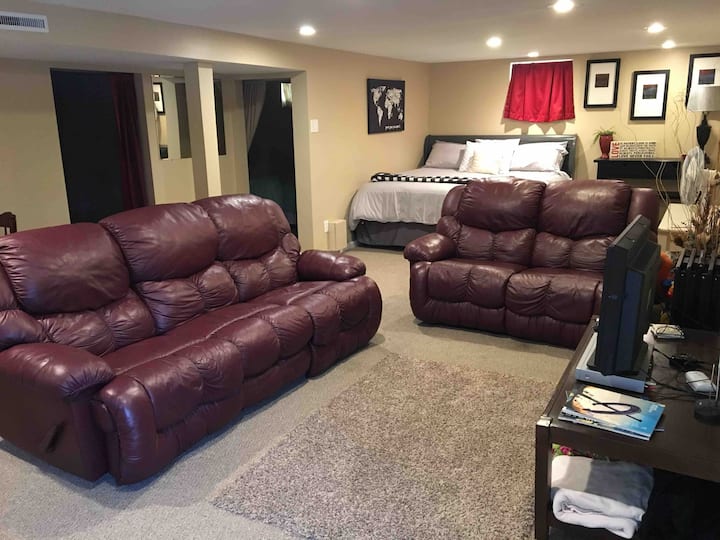 You will have the entire basement to yourself which includes a full size bed in the bedroom and a king size bed in the corner of the living room area.