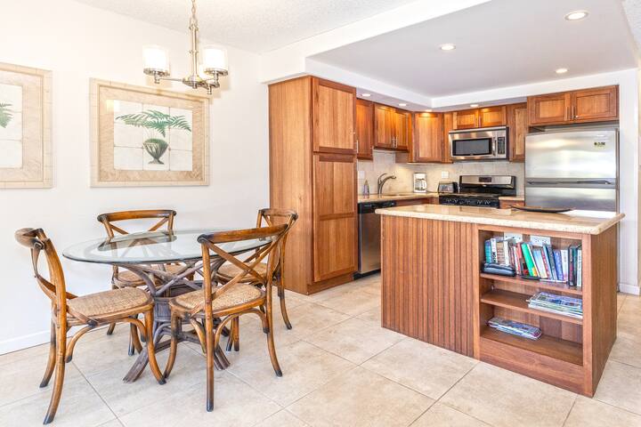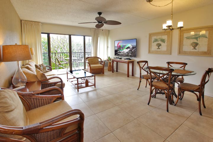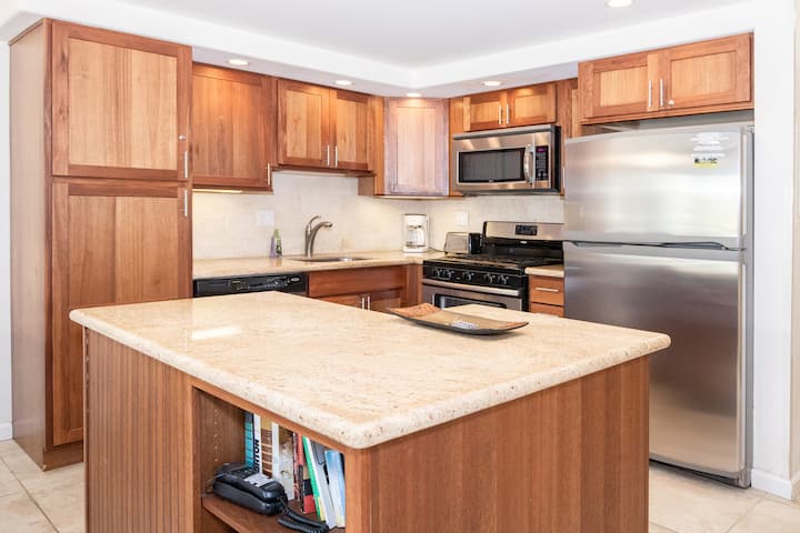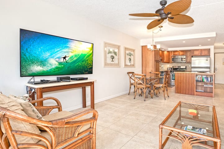 You'll enjoy staying at this comfortable clean renovated condo in Kihei Akahi resort. Located right across South Kihei Road from worl-famous Kamaole II Beach, in the heart of the vibrant beach town of Kihei on the sunny South Shore of Maui. This condo features a King bed in the bedroom, a fully eqiupped kitchen and a washer/dryer inside the unit.