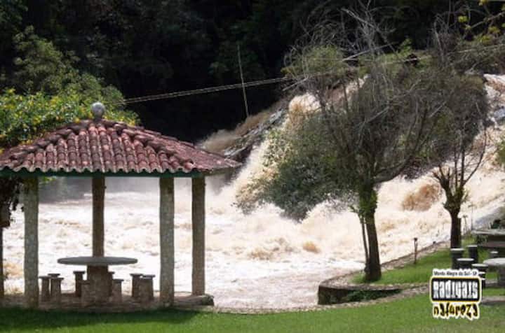 Casa de campo grande com vista para cachoeira