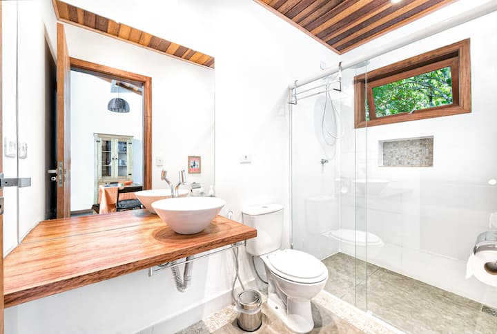 Sítio tropical rústico, uma ótima opção para quem deseja ficar próximo das praias de Ilhabela com uma área verde com cachoeira praticamente na varanda de sua casa, buscando o contato com a natureza, paz, tranquilidade e recompor as energias. O sítio era uma das grandes atrações turísticas da ilha na década dos 80/90 e hoje compartilhamos o antigo parque aquático exclusivamente com nossos hóspedes. O rio tem 3 cachoeiras. Duas quedas de água dividem o rio em 2 poços com correnteza fraca (em sua maior parte do tempo) formando automaticamente piscinas naturais. A beira do rio no lado de cima, é bem espaçoso, perfeito para tomar sol depois de nadar e tem um tobogã grande para aventureiros.