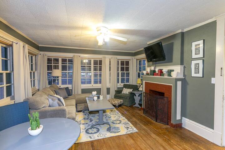 A sunny guest suite in historic KC home has all the character and comfort you'll need while exploring the city. This fully private suite includes a large bedroom with queen bed, kitchen, dining area, living room and bathroom. TV with a amazon fire stick for streaming and wifi included. Welcome to KC!