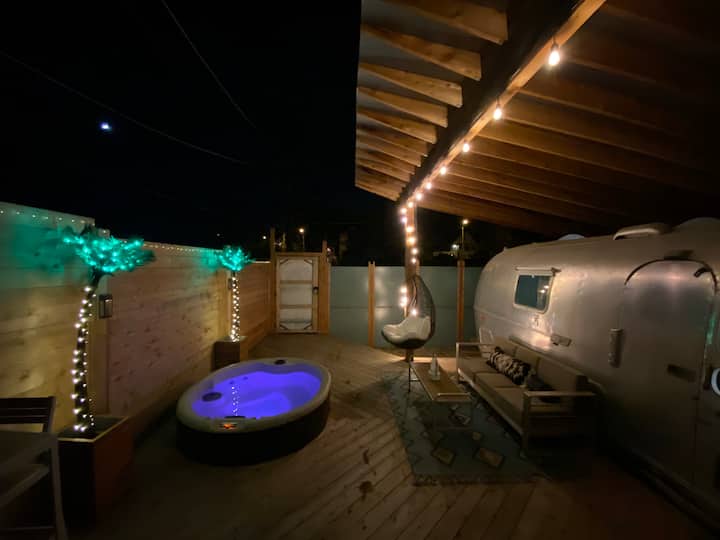 You'll enjoy the charm of a vintage trailer, with the modern conveniences you'd expect from a luxury vacation rental - Spa like outdoor space with brand new hot tub, swinging chair, and lovely patio furniture. And on the inside, a high end kitchen and bathroom with flushing toilet, ICE COLD AC, super strong heating system for the Winter months, a high end shower, top of the line appliances, Smart TV with Netflix, HBOnow, Direct TV, Prime Video, 5-star hotel quality linens and pillows, and much much more!