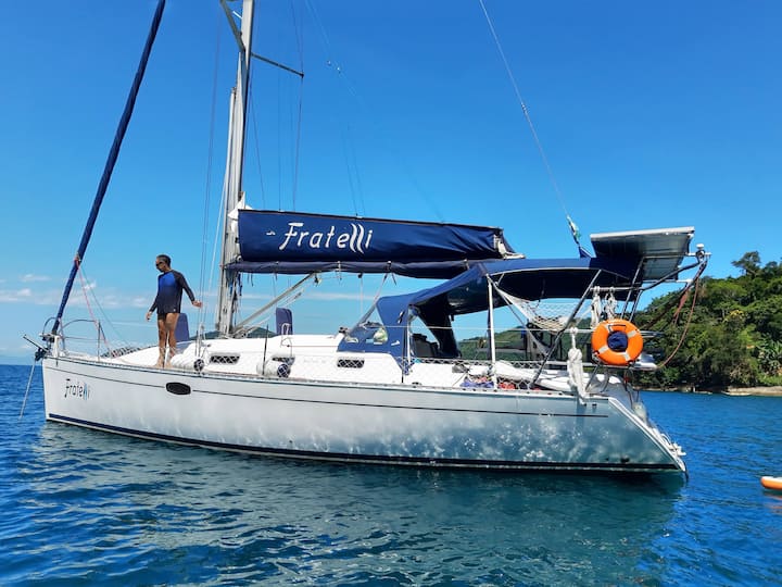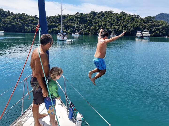 Desde 2019 recebemos hóspedes que queiram desfrutar das belezas da região da Baia de Paraty e conhecer como é vida a bordo de um veleiro.