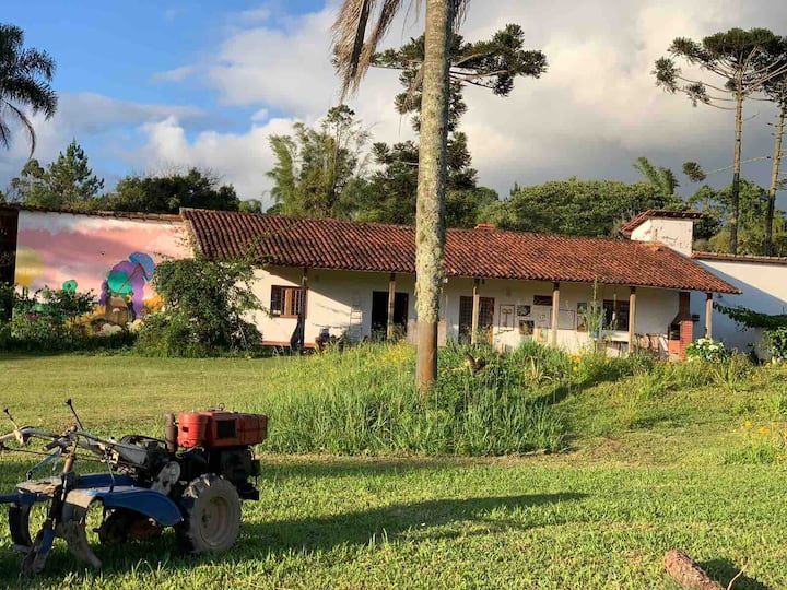 A casa Sede compõem um pequeno vilarejo ecológico com algumas casas em uma área de preservação de 16 hect com trilha ecológica, horta, galinheiro, pomar, churrasqueira, ducha da nascente e agradáveis áreas de jardins 🪷