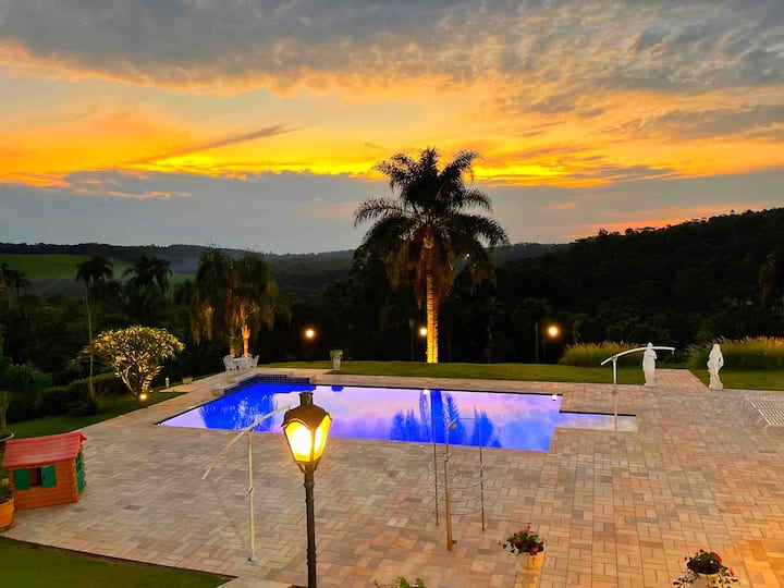 Casa de campo com piscina capela quadra de beach